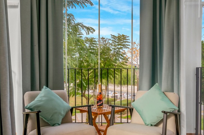 The first thing that impresses you about Hacienda Riquelme Golf Resort is the wide-open spaces, the extensive gardens and the low-density construction, which create a relaxing environment to enjoy a very safe and peaceful life or holiday. The apartments are set out spaciously around the magnificent and challenging 18 hole golf course part of the Jack Nicklaus Golf Trail. In the heart of the resort you will find the beautiful renovated Hacienda where you will find a supermarket, clubhouse, restaurant and bar. The inner court yard becomes the hive of entertainment in the Summer, whilst the large terrace set in the stunning gardens is open all year for “al fesco” dining and drinking.